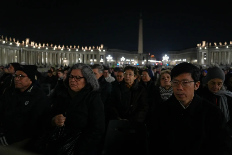 Hundreds of people gather to pray the rosary for Pope Francis’ health on Thursday, March 6, 2025, in St. Peter’s Square at the Vatican. / Credit: Daniel Ibañez/CNA