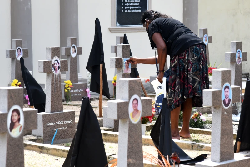 A woman pays tribute to victims of the 2019 Easter Sunday terror attacks at a cemetery in Negombo, Sri Lanka, on April 21, 2022, marking three years since the tragic attacks. / Credit: Ruwan Walpola/Shutterstock