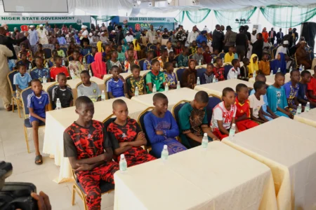 MINNA, Nigeria — A total of 100 of the schoolchildren abducted from a Nigerian Catholic school last month and released over the weekend were hosted at a government-organized ceremony on Monday, many of them looking lost but relieved.