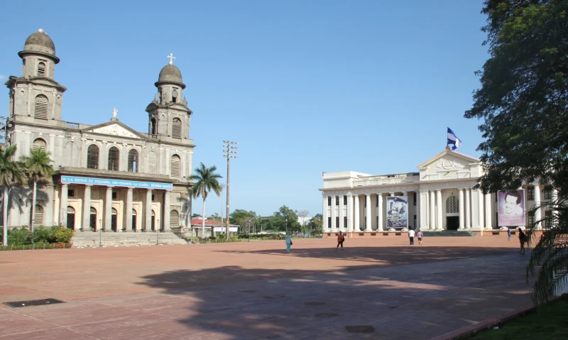 The Metropolitan Cathedral Santiago Apóstol and the National Palace in Managua, Nicaragua. / Credit: Martin Thurnherr, CC BY-SA 4.0