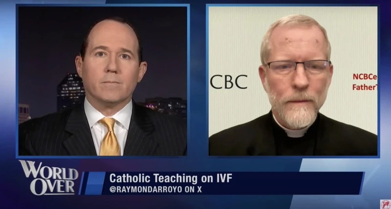 EWTN’s Raymond Arroyo interviews Father Tad Pacholczyk, senior ethicist at the National Catholic Bioethics Center, about the moral concerns inherent in IVF on Feb. 20, 2025. / Credit: EWTN News/The World Over