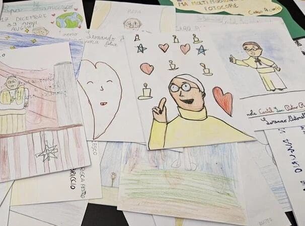 Get-well cards from schoolchildren to Pope Francis are seen at the Vatican, Sunday, Feb. 23, 2025 / Credit: ACI Stampa