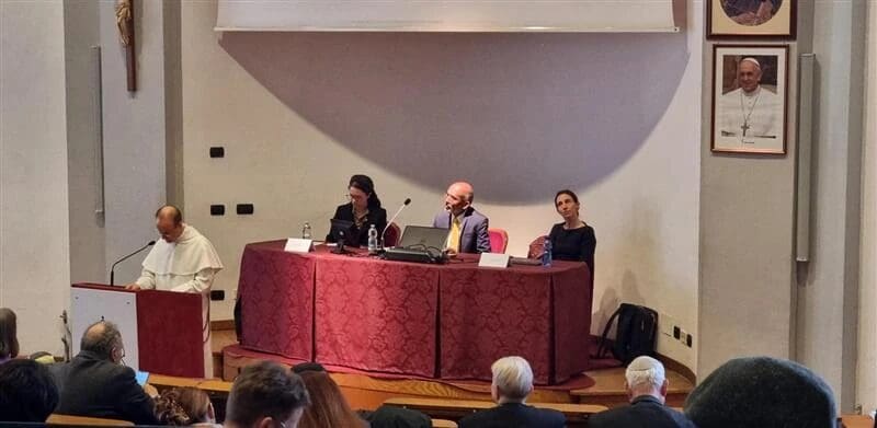 Participants speak at the conference “Jews and Catholics on Ethics: A Light to the Nations” at the Pontifical University of St. Thomas Aquinas in Rome on April 1, 2025. / Credit: Kristina Millare/CNA