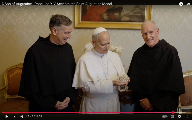 Pope Leo XIV accepts the Medal of St. Augustine from Fr. Robert P. Hagan, O.S.A., prior provincial of the Augustinian Province of St. Thomas of Villanova (R) and Fr. Joseph Farrell, O.S.A., vicar general of the Order of St. Augustine (L) in a vi… […]