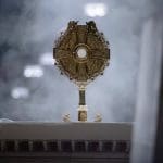 The Eucharist is displayed in a monstrance in St. Patrick’s Cathedral in New York City before a Eucharistic procession on Oct. 15, 2024. / Credit: Jeffrey Bruno