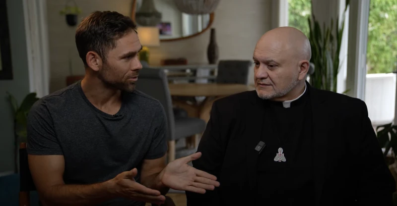 Ryan Bethea (left) and Father Carlos Martins (right), co-hosts of “The Exorcist Files” podcast. / Credit: The Exorcist Files